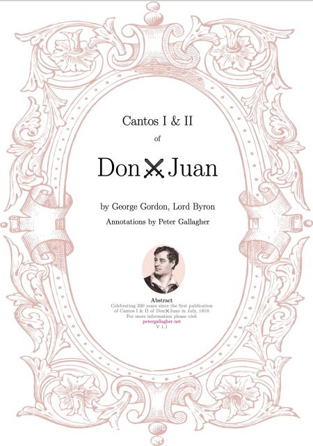 This is my annotated edition of the first two Cantos of Gordon Lord Byron’s comic epic poem “Don Juan”. I compiled it in June, 2019 ready for the Bi-Centenary of the first publication by John Murray in London on 15 July, 1819. (The link will enable you to see and download the document).